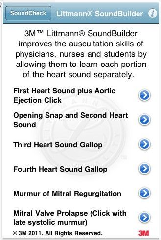 The 3M™ Littmann® SoundBuilder App is a learning tool designed to help improve the auscultation skills of students and practicing clinicians. There are 14 unique lessons - based upon key heart sounds - that combine text, a virtual mannequin, 3D cardiac animation and dynamic waveforms. Visit www.itunes.com to download the FREE app today.